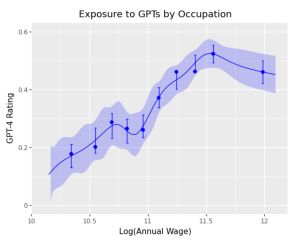 Secondo un recente studio di Eloundou et al., circa l’80% della forza lavoro negli Stati Uniti potrebbe vedere almeno il 10% dei compiti lavorativi influenzati dall’introduzione di strumenti come ChatGPT mentre circa il 19% dei lavoratori potrebbe subire un impatto su almeno il 50% delle loro mansioni lavorative. Questo coinvolgerà anche compiti creativi e avrà un impatto soprattutto su individui più istruiti e meglio retribuiti.