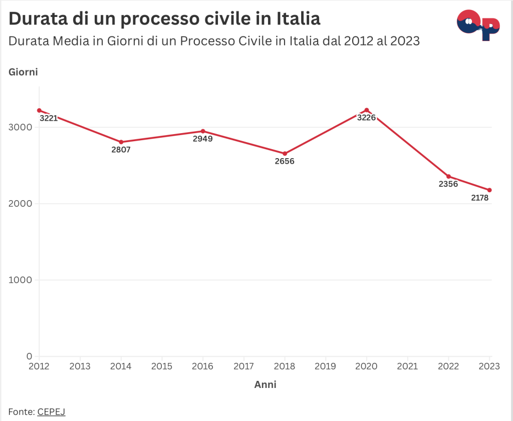Nonostante le problematiche descritte, negli ultimi anni, il sistema giudiziario italiano ha registrato alcuni miglioramenti, attribuibili a specifiche riforme e agli investimenti previsti dal Piano Nazionale di Ripresa e Resilienza (PNRR). Il PNRR ha destinato al settore Giustizia risorse pari a 2.700 milioni di euro, con l’obiettivo di ridurre la durata dei procedimenti e allineare l’Italia alla media dell’Unione Europea in termini di efficienza giudiziaria. Le misure previste mirano a un cambiamento strutturale del sistema giudiziario italiano, specialmente attraverso interventi di digitalizzazione e modernizzazione, con l’obiettivo di migliorare la qualità delle decisioni e ridurre significativamente i tempi di attesa per cittadini e imprese.